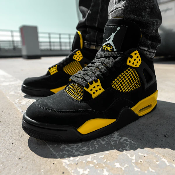 Air Jordan 4 Retro Thunder sunt genul de sneakerși care ies imediat în evidență. Combinația de negru cu galben arată brutal, materialele sunt premium, iar pe picior stau super bine. Un model must-have 🔥⚡️Top Top recomand Sneakers Outlet